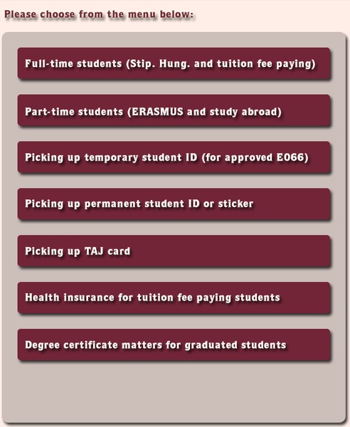 After you click on Full-time students (Stip. Hung. and tuition fee paying) button you can choose from the following list: